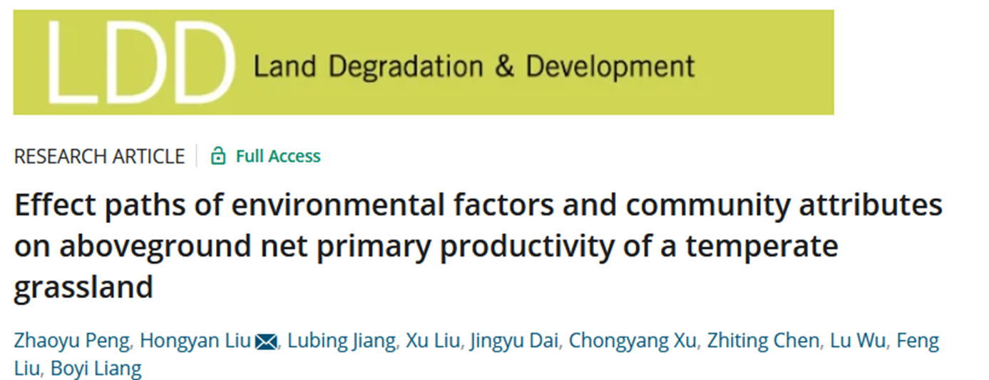 拔尖计划学生蒋璐冰同学以第一作者在《Land Degradation & Development》发表拔尖成果
