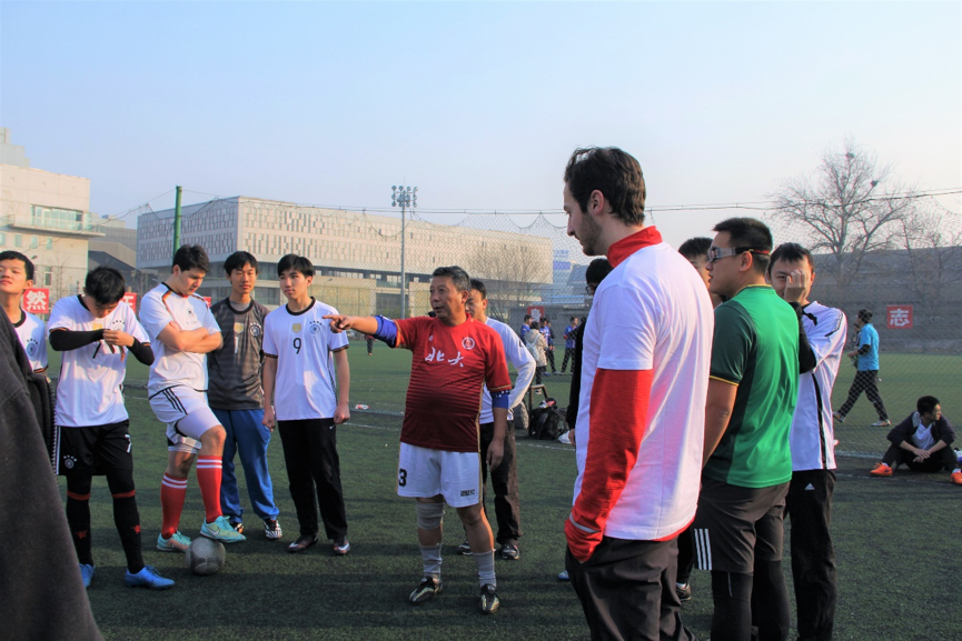 第20分钟,北大联队赢得任意球机会,皮球再次传入禁区,前锋用脚轻轻一蹭,皮球顺势入网,得分!!北大联队反超比分,2:1!!!