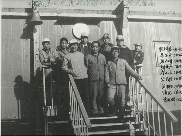 崔之久教授在南极,前排左起:张知非、崔之久、刘耕年