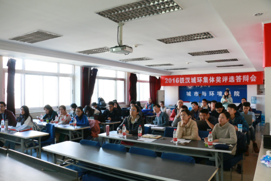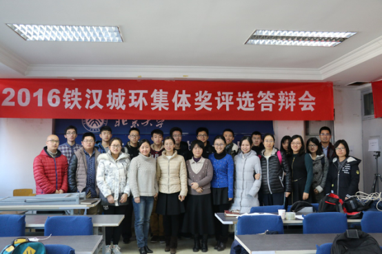 的大力支持下和同学们的积极参与下,再次启动了铁汉城环集体奖评选活动。 活动开始以来,得到全院同学的积极参与,最终进入答辩环节的17个集体分别是14级生态地科班、城环羽毛球队、14级博士党支部、14级博士班、129核心团队、城环慢垒队、城环排球队、15硕士党支部、文县实践团、城环男篮队、14环科班、城环学生会部长团、城环研会部长团、“燕南北侧户外空间改造计划”课程小组、城环辩论队、丹霞山实践团、中国大学生环教教育基地志愿者团队。 在答辩过程中,各个团队展现出了自身独特的风格与团队精神。其中14级生态地科班着重强调了自身野外实习经历;城环羽毛球队以顽强拼搏为主题,逐步从低谷中走出,迈入高峰;14级博士党支部和14级博士班重点介绍了丰富的活动和制度创新方面的突出贡献;129核心团队每年对于3p视频