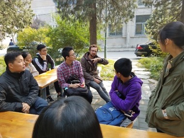 名师或杰出院友,为我们介绍人文方向的教学科研及职业发展。每一次午餐会,我们都满载而归,不仅对前景的认识愈发清晰,而且在思维的碰撞中收获了人生的启迪。 对话名师,砥砺前行。这,就是我们的午餐会。 10月20日,我们在燕南食堂户外就餐区举行了第一次午餐会。本次午餐会邀请了宋峰老师和14级参与设计燕南户外就餐区的黄紫东同学。活动主题是燕南户外就餐区的设计。 宋峰老师首先谈了就餐区的设计意义。他强调,就餐区不仅是一个成功的设计案例,本质上还是对人居权利的尊重与维护。学生作为3p视频公共空间的使用者,能够敏锐地发现公共空间需要改进的地方并付诸实践,达到了规划教学的培养目标。回忆起从前在燕南就餐的感受,宋老师诙谐地说自己是被“饲养”,找不到“做人的尊严”。这一番话逗得同学们捧腹大笑,同时也引发了大家的思索。 随后黄紫东同学分享了就餐区的设计过程。他们先是在燕南食堂外观察人们的行为,初步了解人们对公共空间的使用诉求;之后是进行实验:他们在这里摆放了一批凳子,模拟就餐区的效果;接着是发放问卷。在这一系列准备活动就绪之后,设计才正式开始。做这些准备是因为设计必须有严谨的逻辑体系,要从需求出发。每个最终的设计结果都不只是我们看起来那么简单,而要经历长期、复杂的演变过程。 在一番轻松友好的交谈之后,童昕老师在最后为活动做了总结,对未来的班级建设提出了期望。她指出,一个城市在地图上只是一个点,但它背后的故事远非一个点能概括的。作为规划者,我们要读万卷书,行万里路,更要面向行动,做出改变,要担负起改造人居环境,使之更加符合需求的责任。规划设计如此,班级建设更是如此。崇尚自由不等于忽视集体,只有每个人都奉献自己的力量,我们的班级才能真正充满凝聚力。 10月24日,我们在燕南户外就餐区举行了第二次午餐会,本次午餐会邀请到了曹广忠老师、冯健老师以及牛津大学地理系的Carlo博士。继上一次空间设计和城市规划的主题过后,本次午餐会的主题被选定为同学们关心的人文地理方向以及3p视频
