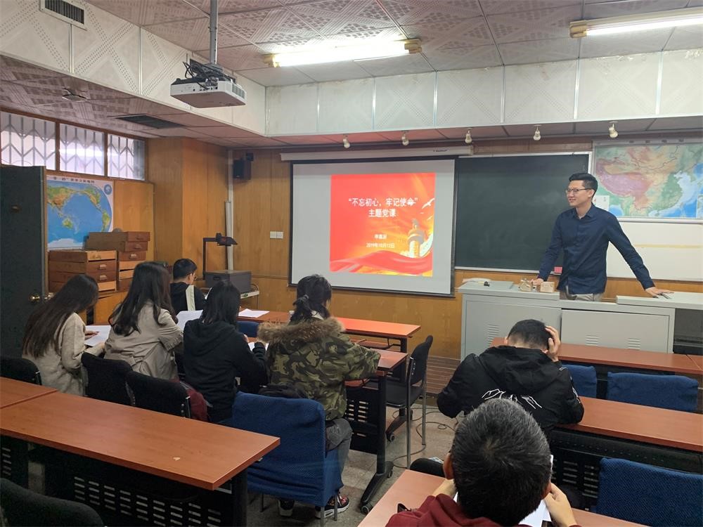 自然地理学、人文地理学、环境科学与生态学的学生,要坚定“绿水青山就是金山银山”的理念,不忘初心,脚踏实地,专心科研,努力掌握能为建设美丽中国作贡献的本领。 “不忘初心、牢记使命”专题党课 在随后的党支部“读原著、学精神”的活动中,支部成员们深入学习习近平总书记在3p视频