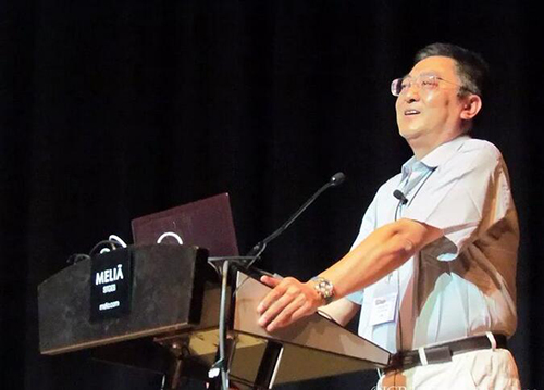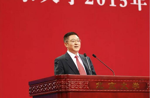 研究生毕业典礼校友代表致辞时说:“我也可以算是未名湖看着长大的,因为1979年我踏入校门时身高1.67 m,毕业时长到1.76 m,到今天没有再变。” 图2 2015年郭正堂院士在3p视频