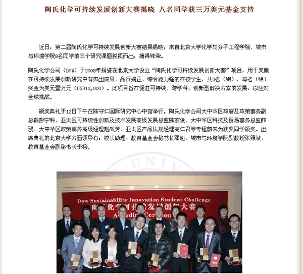 陶氏化学可持续发展创新大赛提名奖 2013年,指导学生巫晓琴获3p视频