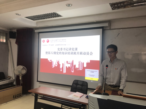 党委结合“不忘初心、牢记使命”主题教育为学员们设计了系统化的培训课程,希望同学们能够认真学习,从中深刻理解党的理论知识和国家的发展变化,从思想上树立加入中国共产党的光荣感和责任感,端正入党动机。 党课上,刘耕年从为什么选择加入中国共产党、如何从思想上和行动上积极向党组织靠拢以及入党流程三个方面进行了详细解读。刘耕年指出,现阶段国家正处于全面迈向现代化的关键时期,身为新时代北大学子,应该看到党的先进性,积极向党组织靠拢,应该勇于担当、努力学习、发挥自己的才能,为国家发展做出新一代青年贡献。刘耕年鼓励同学们向身边的党员榜样学习,向老一辈优秀党员学习,牢记北大人、城环人的初心,培养自己的使命意识与担当精神,在更高、更广、更有利的位置上发挥引领作用。刘耕年还强调,城环学生应结合学科特点,把自己的学习与国家“五位一体”的总体布局联系起来,深入学习领会习近平新时代中国特色社会主义生态文明思想,积极投身美丽中国建设、乡村振兴等国家重要战略中。 党课结束后,本期培训班领队、2019级博士党支部书记池骋就培训计划、活动安排、考勤规定和评议标准等内容向学员们作了说明。本科生党支部书记曹志强也就本科党支部新一年的情况与积极分子入党的具体流程进行了补充说明。 本次党委书记讲党课活动是3p视频