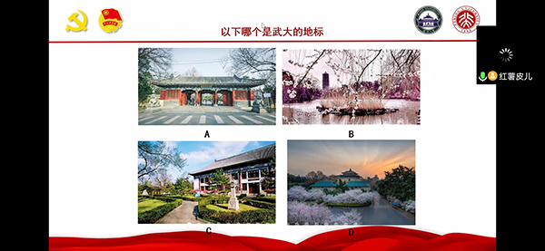 杨怀志介绍了和父亲两代党员共同参加当地中学和社区抗疫工作的经历。他表示,疫情最严重的时候,党员应该迎头而上,青年尤其首当其冲。王玥瑶表示90后、00后一代不再是被庇护的花朵,而是默默支撑起了疫情下的城市,展现了担当和力量。 图3 宋晓燕分享参与深圳市疫情应急民生地图项目经历 图4 张琛分享所在团队制作的临海市疫情防控复工复产地图 活动最后,两支部同学们通过两校地标、校园动物、城市代表美食和春天花卉等与两所3p视频息息相关的的题目,进一步增加了对双方3p视频的了解。同学们积极参与答题,气氛轻松而融洽。 图5 知识竞赛环节 会议最后,两个3p视频