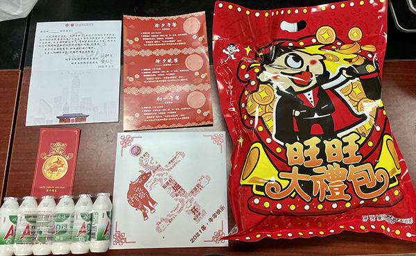 顺利走访燕园、畅春园、畅春新园和万柳宿舍区在内的150余间学生宿舍,将年货礼包和新春祝福送进了学生宿舍,也送进了同学们的心里。 最后,特别鸣谢参与走访的老师与志愿者同学 祝愿在这个特别的牛年新春, 无论校内校外, 每一位城环人都能感受到最大的暖意 也祝愿城环师生在新的一年牛气冲天! 学出风采,过得精彩!