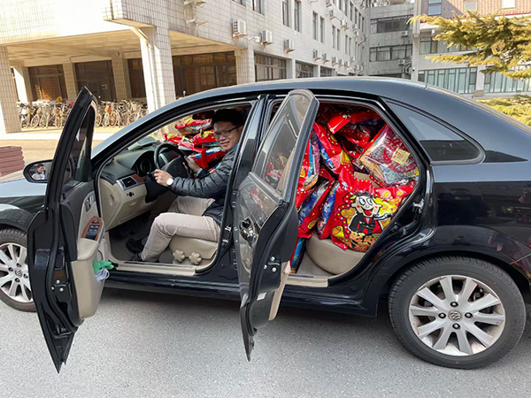 送到学生手上 都经历了哪些历程呢 开心的志愿者小门同学 一百余箱快递兜兜转转来到燕园 愉快的包压岁钱瞬间 为同学们包上压岁包并加盖城环特色印章 活捉一只小可爱 志愿者流水线式分包年货 张新平老师与宋宛儒老师开车运送物资 超重磅走访阵容 院长贺灿飞老师、党委书记刘耕年老师、副院长李本纲老师、党委副书记张新平老师及十几位班主任、学工办老师齐心将物资一一送至学生宿舍,把祝福带到学生们的心间。 院长贺灿飞老师为留校过年学生介绍年货礼包 党委书记刘耕年老师与留校过年学生合影 团委书记谭卓立老师、常务副书记宋宛儒老师与志愿者将物资送至万柳学生宿舍 老师们送温暖在路上 至此,在二十名老师与志愿者的辛苦付出下,城环3p视频