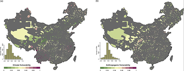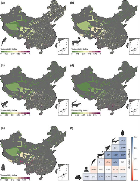 宏观生态课题组前博士后、现兰州大学青年研究员Nawal Shrestha在《自然·通讯》发表了题为 “Vulnerability of protected lands in the face of climate and human footprint changes” 的研究文章。该研究从物种脆弱性、气候变化和人类胁迫三个维度,评估了2572个中国自然保护区的脆弱性。该评估识别出中国受到最大威胁的前10% 的保护地,并将约1/5的保护地选为受气候和人类影响的脆弱性热点区域。并且,物种多样性越高的保护区受未来气候变化的影响越大,从而导致更高的物种灭绝危险。Nawal Shrestha是这篇文章的第一作者,王志恒和 Nawal Shrestha是这篇文章的共同通讯作者。 自然保护区在减少栖息地损失和维持物种种群中起到了关键作用。自1992年在巴西举行联合国地球问题首脑会议以来,全球自然保护区的范围大约扩大了一倍。目前有20多万个保护区覆盖了全球约15%的陆地面积,后2020全球生物多样性保护的目标是到2030年将这一覆盖率扩大到30%。评估自然保护区的保护效力对实现有效的生物多样性保护意义意义重大。而以往的研究表明,只注重覆盖面积对生物多样性的保护效力是比较低的。因此,各国应首先评估保护区的保护效力,确定保护区的保护优先级,而非仅注重实现面积的覆盖目标。 在目前的研究中,作者提出了包括物种脆弱性、气候脆弱性和人类活动脆弱性等三个维度的框架来量化中国2572个保护区的威胁水平。他们根据脆弱性得分将这些保护区划分为不同的威胁类别,并确定了需要最高保护关注度的保护区。他们的评估表明,位于中国西南部(云南、重庆)、中部(湖南)和南部部分地区(广西)的约7%的保护地非常脆弱。由于剧烈的气候变化和栖息地丧失,这些保护区内的物种可能面临风险,迫切需要采取严格的管理措施来保持其有效性。同样重要的是位于中国东部和北部的气候脆弱性和人类活动脆弱性热点。有趣的是,在过去的60年里,物种脆弱性热点地区的气候一直不稳定,这从保护的角度来说更令人关注,因为物种脆弱性热点地区目前拥有更多的受威胁物种。如果我们假设全球气候变暖趋势像过去那样增长(有很大的可能),物种的分布范围将进一步缩小,物种脆弱性热点中的物种将受到更大的威胁。气候脆弱性热点和人类活动脆弱性热点与物种脆弱性热点的重叠非常小,这表明只依据物种脆弱性热点进行保护优先区选择(这是一种普遍的全球做法),可能会增加一些珍稀物种的灭绝风险。 Spatial patterns of climate and anthropogenic vulnerabilities across protected areas (PAs) in China. 该研究强调,今后在对保护区的评估中要同时考虑气候变化和人类活动以及物种脆弱性,来最大限度地提高保护区的保护效率。该研究提出的框架有助于在全球范围内确定脆弱的保护区,以便政府及时采取积极主动的管理措施,保持保护区内的生物多样性和生态系统。该研究对评估全球保护地的恢复力及其范围拓展等方面同样有用。 Spatial patterns of species vulnerabilities across protected areas in China. Classification of Chinese protected areas (PAs) based on three vulnerability indices: climate vulnerability, anthropogenic vulnerability, and species vulnerability. 这项工作得到了国家重点研究发展计划(2017YFA060501)、中国科3p视频