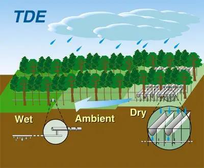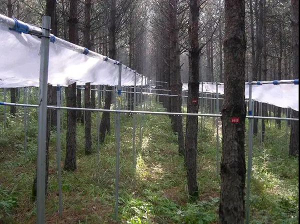 也与紧邻塞罕坝的御道口牧场建立了长期合作关系,于2020年9月开始进行草地生态系统碳水通量观测,同时也配备了一定的摄像物候观测。该样地的建成为林木交错带生态脆弱区对全球变化响应的研究提供了强力的技术支撑,补强了塞罕坝地区草地生态研究。 草地生态系统碳水通量观测仪器 经过三十余年的研究和十余年的监测,北大科研团队在塞罕坝孵化了系列科研成果: 1 刘鸿雁教授研究团队历经三十余年,系统开展塞罕坝及周边地区植被地理与植被生态研究,揭示了这一地区植被格局的成因,重建了这一地区过去植被演化过程,提出了区域林草植被覆盖的合适承载力。尤其是对多个造林树种固碳和耗水过程连续多年的观察,揭示了三北防护林地区主要造林树种小叶杨出现大面积死亡的原因,提出了未来区域植被恢复的策略。研究成果“中国北方生态脆弱区植被动态及其对气候变化的响应”获得2011年度教育部自然科学奖二等奖。参与完成的咨询报告“关于应对气候变化规避三北防护林衰退风险的建议”2020年得到了国家领导人的批示。 2 基于2010年建立的不同林龄落叶松人工林长期氮添加平台和2018年建立的季节不对称性增温平台,朴世龙教授团队对不同生长阶段落叶松人工林生态系统过程进行研究,旨在揭示落叶松人工林对未来气候变化情景的响应与适应。研究团队明确了氮沉降对落叶松人工林生长和土壤碳排放的影响模式,为建立高效、稳定、可持续的人工林提供了理论基础;揭示了落叶松人工林物候对季节不对称性增温的响应,为落叶松人工林建成和应对未来气候变化提供了重要的理论基础,有助于从物候学角度认识人工林生产力的维持机制。 3 基于2010年建设的樟子松人工林养分添加平台,王娓副教授团队对人工林生产力及土壤碳排放动态进行连续监测,改进了菌根真菌呼吸的测定方法,阐明人工林生长和土壤碳排放的响应模式,为人工林可持续管理提供参考。此外,基于不同退化草地氮添加实验平台(2011年起),开展较为系统的草地退化评估与恢复研究,建立草地退化评估指数,明确植物与土壤对人类干扰的响应,为退化草地的恢复治理提供借鉴。 4 郑成洋副教授团队选择塞罕坝45年樟子松人工林,通过穿透雨转移方法,增加、减少样方内+30%、-30%的水分,设立三个处理三个重复森林降水控制平台。研究樟子松人工林降水改变对水分利用效率、森林生长、土壤养分、植物生理等响应。 森林降水控制实验示意图 在未来,塞罕坝站将在现有监测和研究的基础上,以“林水关系”为主线,继续立足人工林生态系统的生态学基础、人工林对气候变化的响应与反馈、人工林生态效应的动态变化、不同造林模式的适应性四个研究方向开展长期定位监测和实验研究。 久久为功,薪火相传 塞罕坝站每年吸引全国多所高校的师生在此开展植物学、生态学、自然地理学、林学等学科的教学实习。 塞罕坝站目前是北大重要的生态学、自然地理学、环境科学的实习基地,也是3p视频
