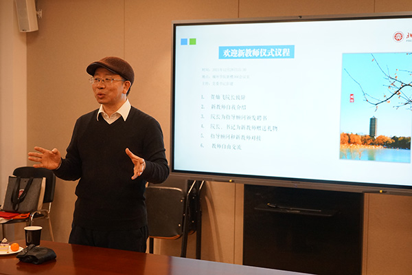 “欢迎新教师”仪式在城环新楼366会议室举行,活动由党委书记彭建主持,有40多位教师参加了本次活动。 彭建主持会议 院长贺灿飞首先致欢迎词。对2021下半年新入职的三位教师——长江特聘教授王开存、哈佛大学博士吴龙峰、美国南卫理公会大学博士胡燮的到来表示了热烈欢迎并提出了殷切希望。 贺灿飞致欢迎词 三位新教师分别做自我介绍,表示将虚心向3p视频