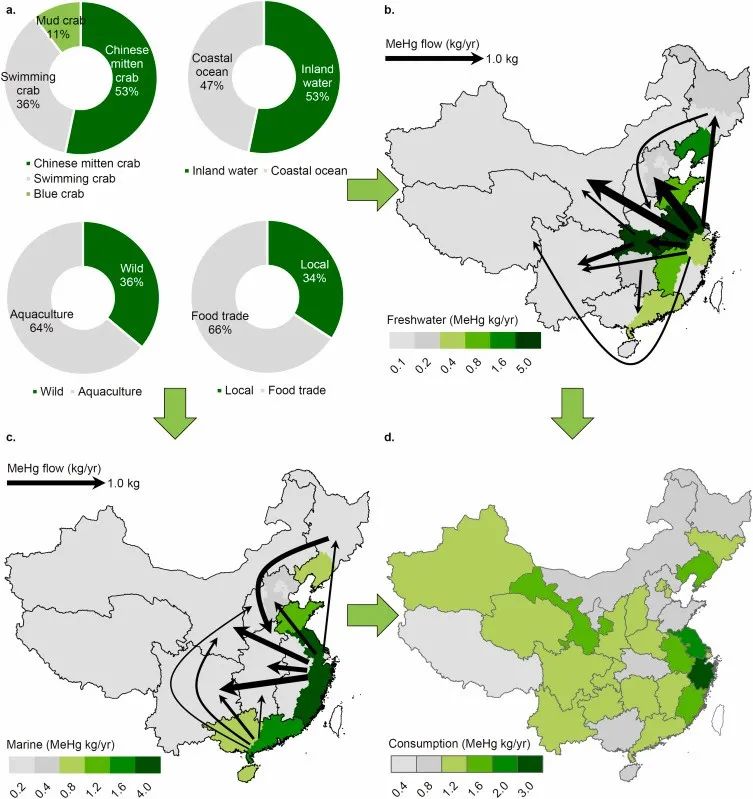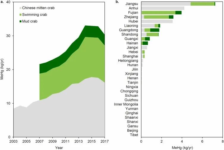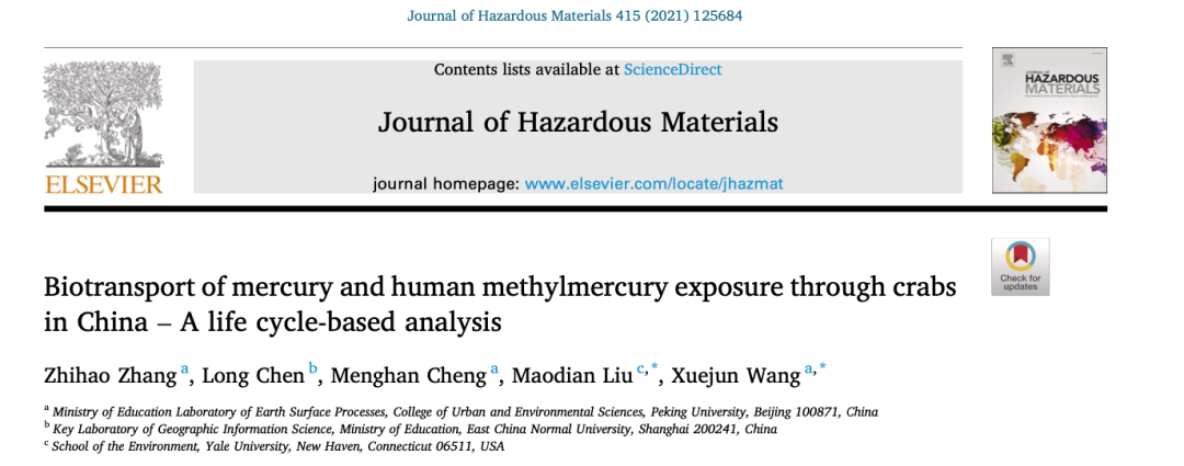 2017级环境科学专业学生张志皓同学拔尖计划研究成果“Biotransport of mercury and human methylmercury exposure through crabs in China - A life cycle-based analysis”以第一作者在《Journal of Hazardous Materials》发表文章。 甲基汞(Methylmercury, MeHg)作为自然界中汞元素的常见存在形式之一,是一种生物毒性物质,对于人体具有极高的神经毒性,发育期婴幼儿及孕期妇女为其主要敏感人群。甲基汞常见于水体及生物体中,通过食物摄入少量即能发挥巨大毒性,食物摄入也是甲基汞暴露的主要渠道。近年来,人体甲基汞暴露研究主要集中在海水鱼类如金枪鱼等高甲基汞浓度生物及东亚地区大米等低甲基汞浓度、高摄入量的食物种类之中,对于其他食物种类的甲基汞含量及人体暴露贡献的研究较为匮乏。本研究以中国产蟹类为切入点,定量地研究了国产蟹类甲基汞的年总产量、迁移途径及最终对于人体甲基汞暴露的贡献(图1)。 图1 中国蟹类甲基汞地区年产量、迁移途径及最终暴露分布 根据本次研究的实验结果,国产蟹类体内含有较高浓度的甲基汞(50–1400 ng/g),与部分海水鱼类甲基汞浓度持平,但却未在甲基汞暴露研究中得到关注。我国年食用蟹类产量中所含有的甲基汞在近20年来快速增长,在2018年达到30 27kg(图2左)。我国蟹产甲基汞产地十分集中,主要分布于东南沿海及少量内陆淡水湖区域,约仅6.8%的国土面积贡献了71%的年蟹类甲基汞通量(图2右)。然而通过跨省食品贸易及进出口,蟹类甲基汞暴露呈现海产蟹类甲基汞从沿海向内陆转移、淡水产蟹类甲基汞从东南向西北转移的趋势(图3)。最终,我国年蟹类甲基汞产量的66%迁移到非产地地区,涉及的人体暴露广泛分布在我国各地。此前的甲基汞暴露研究多注重产地及相关人口暴露,经过贸易迁移而导致的风险转移很少受到关注,严重低估了非沿海地区及非重点水产产地的甲基汞人体暴露,应引起重视。 图2 我国年蟹类甲基汞产量年变化(2003-2017)及2017年蟹类甲基汞各省份产量 图3 我国蟹类甲基汞源汇分布及生物迁移途径 3p视频