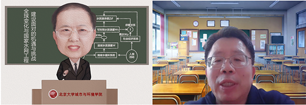 院长贺灿飞教授主持。 夏军院士从国家重大需求以及科学问题出发,对全球变化与水循环、国家水网工程建设与新的挑战、几点思考与建议三个方面进行了详细的讲解。他强调,在国家高质量发展的背景下,我们要科学总结国家水网建设已建工程的经验与挑战,加强国家水网建设的地理系统科学思维与战略规划,推动国家智能水网工程可持续发展的科技创新与基础研究支撑,形成“政-产-学-研-用”的协同创新联盟,以更好服务国家重大重大战略。 夏军院士主讲北大城环3p视频