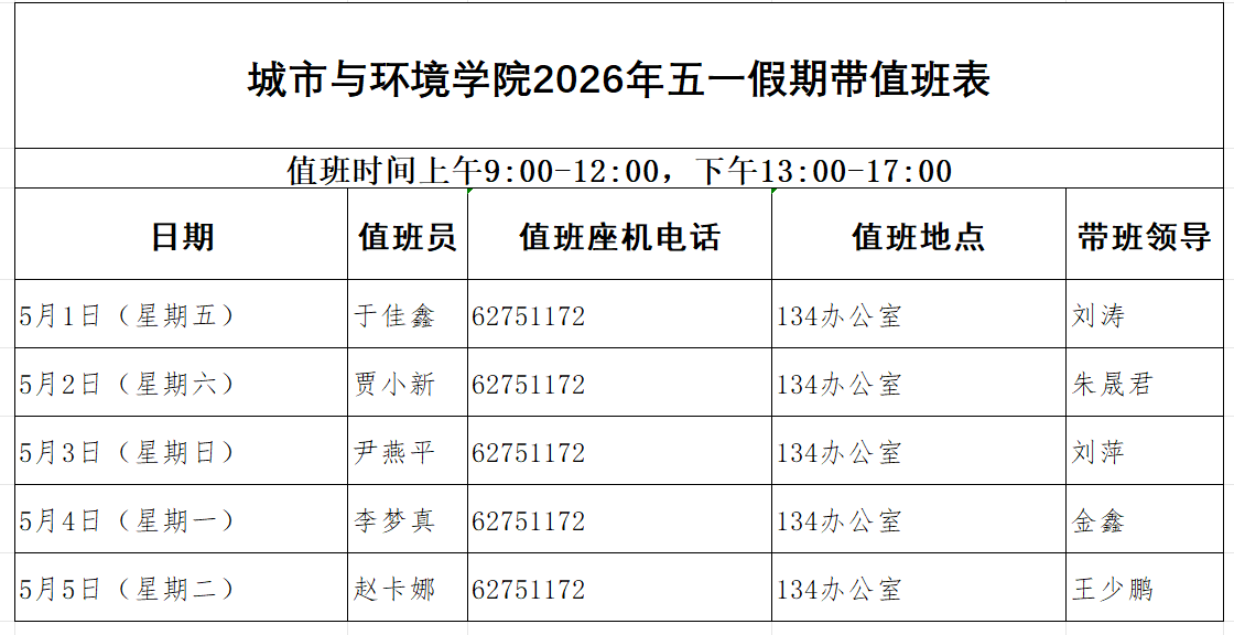 按照3p视频要求,五一放假期间,3p视频 安排院领导带班和工作人员值班。值班人员在岗值班时间为9:00—17:00,领导在京带班时间为9:00—次日9:00。